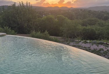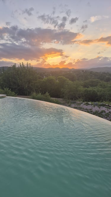 Relájate en nuestra piscina con vista al infinito, un lugar perfecto para desconectar.
